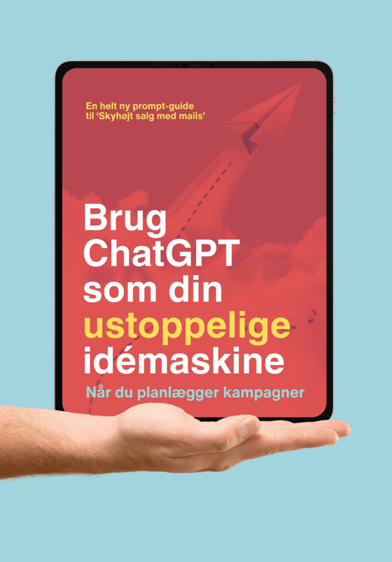 Du får i dag og i morgen 25% rabat. Normalpris: "Så mange penge for ... en bog???", tænker du måske. Så siger jeg: SKYHØJT SALG MED MAILS er ikke kun en musthave workbook direkte i din postkasse – det er et helt kit PAKKET med indhold. Se her, hvad du får: Der er en grund til, at den her workbook findes på tryk. Den er lavet til at ligge fremme. Til at blive slået op i. Til at blive fyldt ud med noter, post-its og overstregninger. Når planlægningen foregår på papir, bliver beslutningerne hurtigere – og kampagnerne nemmere at føre ud i livet. [Ting nr. 2 i kittet] E-udgaven leveres direkte til dig i samme øjeblik, du har lagt din bestilling her. Det betyder altså, at du kan være i fuld gang med din kampagne-planlægning allerede om 2-3 minutter. [Ting nr. 3 i kittet] Planlægnings-arkene samler hele dit e-mailsalg ét sted. Du kan bruge dem igen og igen. Til nye kampagner, nye produkter og nye perioder i året. [Ting nr. 4 i kittet] Det her er ikke inspiration. Det er færdige emnelinjer. Du må gerne kopiere dem. Det er hele pointen. [Ting nr. 5 i kittet] ’Brug ChatGPT som din ustoppelige idémaskine' er skrevet specielt til 'Skyhøjt salg med mails' – fyldt med 'fill-in-the-blanks'-prompts, der gør det nemt for dig at få idéer til indholdet i alle dine kampagner. Så ja, det er præcist så godt, som det lyder: En genvej til altid at have fantastiske idéer til dine e-mailkampagner – uanset hvad du sælger. Med enkle prompts får du ChatGPT til at spytte skræddersyede kampagneidéer ud, der er målrettet dine modtagere. Den er på 120 sider i PDF-format – så du kan downloade den på din computer eller iPad. (eller printe hele moletjavsen, hvis du foretrækker den analoge udgave). Med 'Brug ChatGPT som din idémaskine’ kan du: ✅ Få geniale ideer til enhver mail på få minutter. (Aldrig mere skriveblokering) ·✅ Skrive både korte og lange e-mailkampagner, der engagerer fra første linje. (Uanset om du skal skrive én mail eller en serie på 3, 7 eller 24 mails) ✅ Skrive med en tydelig rød tråd, så hver mail i din kampagne hænger sammen. (Slip for selv at gætte dig frem til den mest optimale rækkefølge) ✅ Få struktur og indholds-inspiration til alle de kampagnetyper, du lærer at bruge med ’Skyhøjt’-bogen. Du skal bare: A) indsætte dine egne produkter eller ydelser i prompts’ne Og så ... B) gør ChatGPT resten. Det er som at have en idémaskine på speed dial. Er der mere i det kit? Dét kan du lige tro. Jeg lagt en række profitable bonusser ind til dig, som du får adgang til øjeblikkeligt. Se alle bonuser i kittet på siden her > I dag og i morgen kan alt det her blive dit med 25% rabat. Normalprisen er 1.695 kr. + moms for den trykte bog Din pris for et helt års overblik, bunkevis af idéer og styr på planlægningen er i dag og i morgen kun: 1.271,25 kr. + moms Snup bestseller-kittet med bonusser, der ændrer din planlægning for evigt, her > NB: Vi sender med DAO kl. 17 i dag og sidste gang i morgen kl. 17. Skriv din privatadresse, når du bestiller (medmindre du arbejder på Nordpolen for en chef med hvidt skæg og derfor er travl på kontoret hele julen …) / Christina Ps. Jeg giver portoen i Danmark. ***************************************************************************** We Love Emails