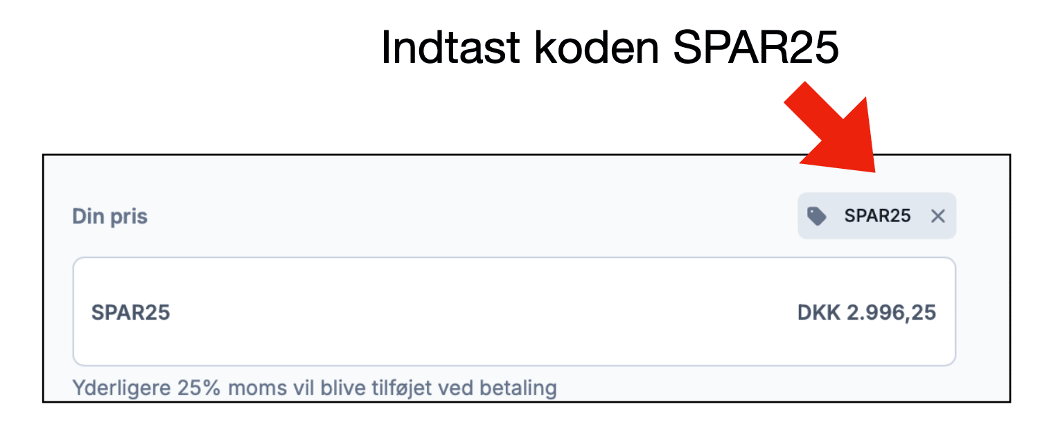 – indtast rabatkoden SPAR25 for at få din særpris.